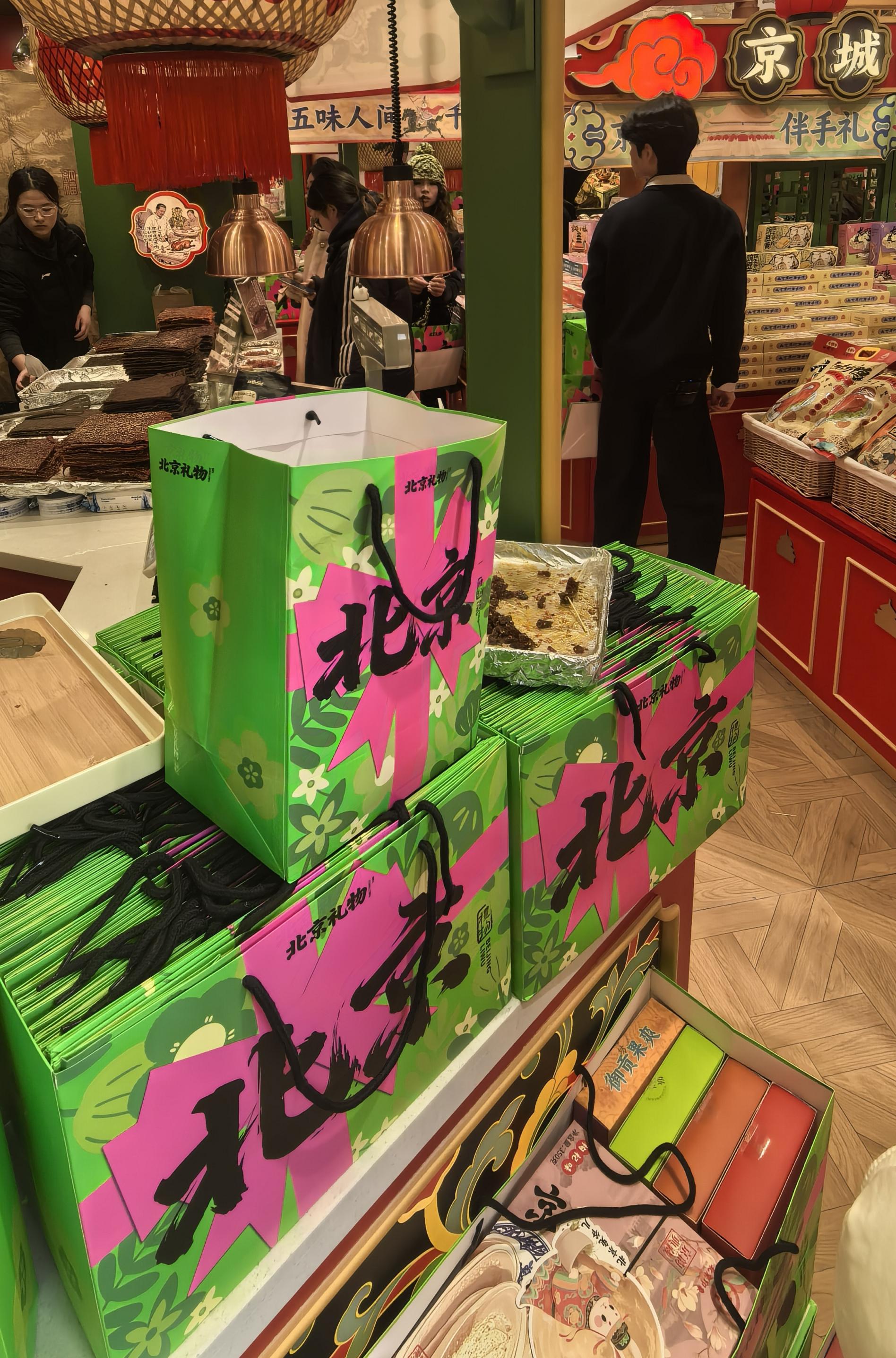 ↑这是前门商业街上商家摆出的年货(1月15日摄)。